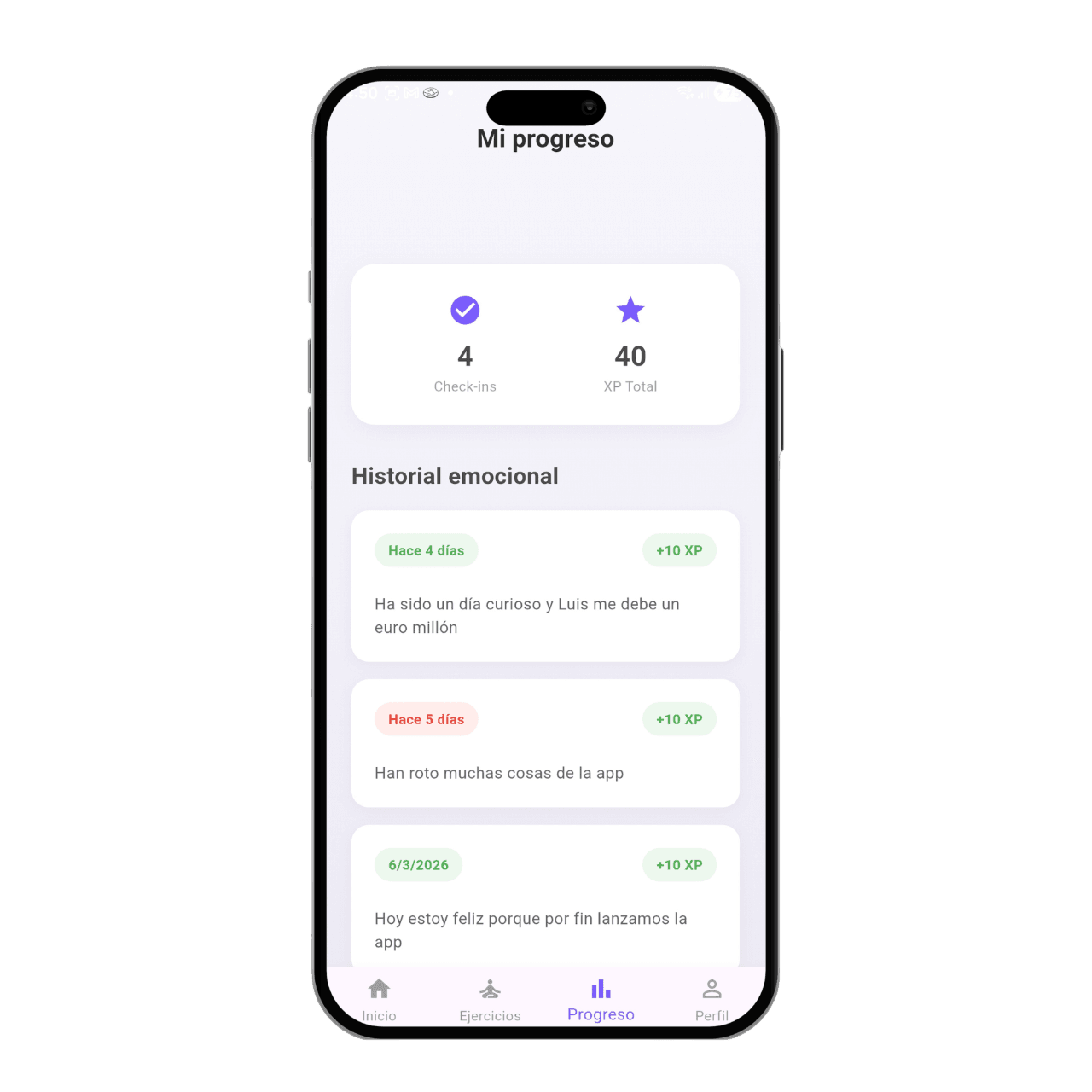 Entiende cómo evoluciona tu bienestar con gráficas claras de tu historial emocional.